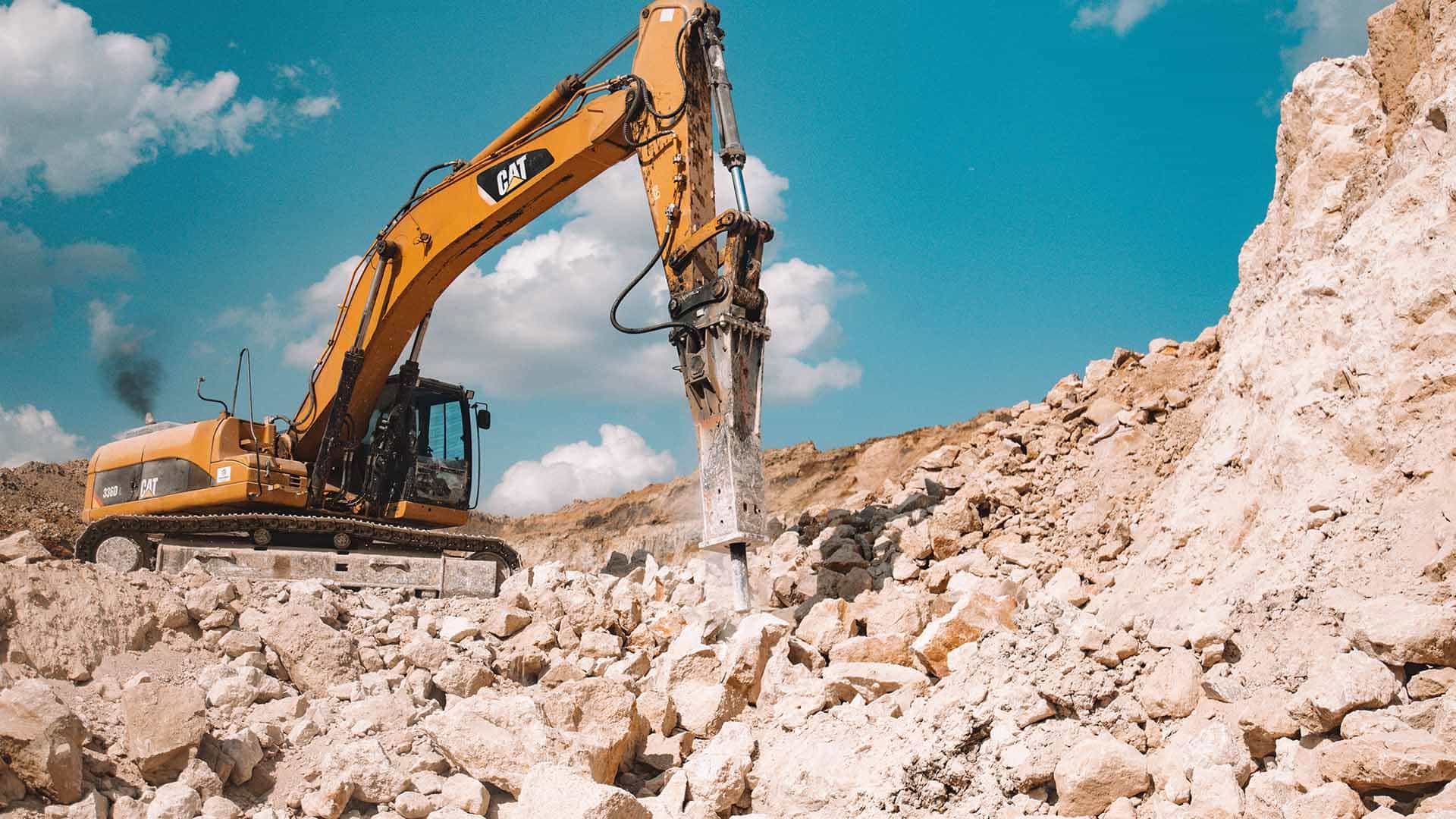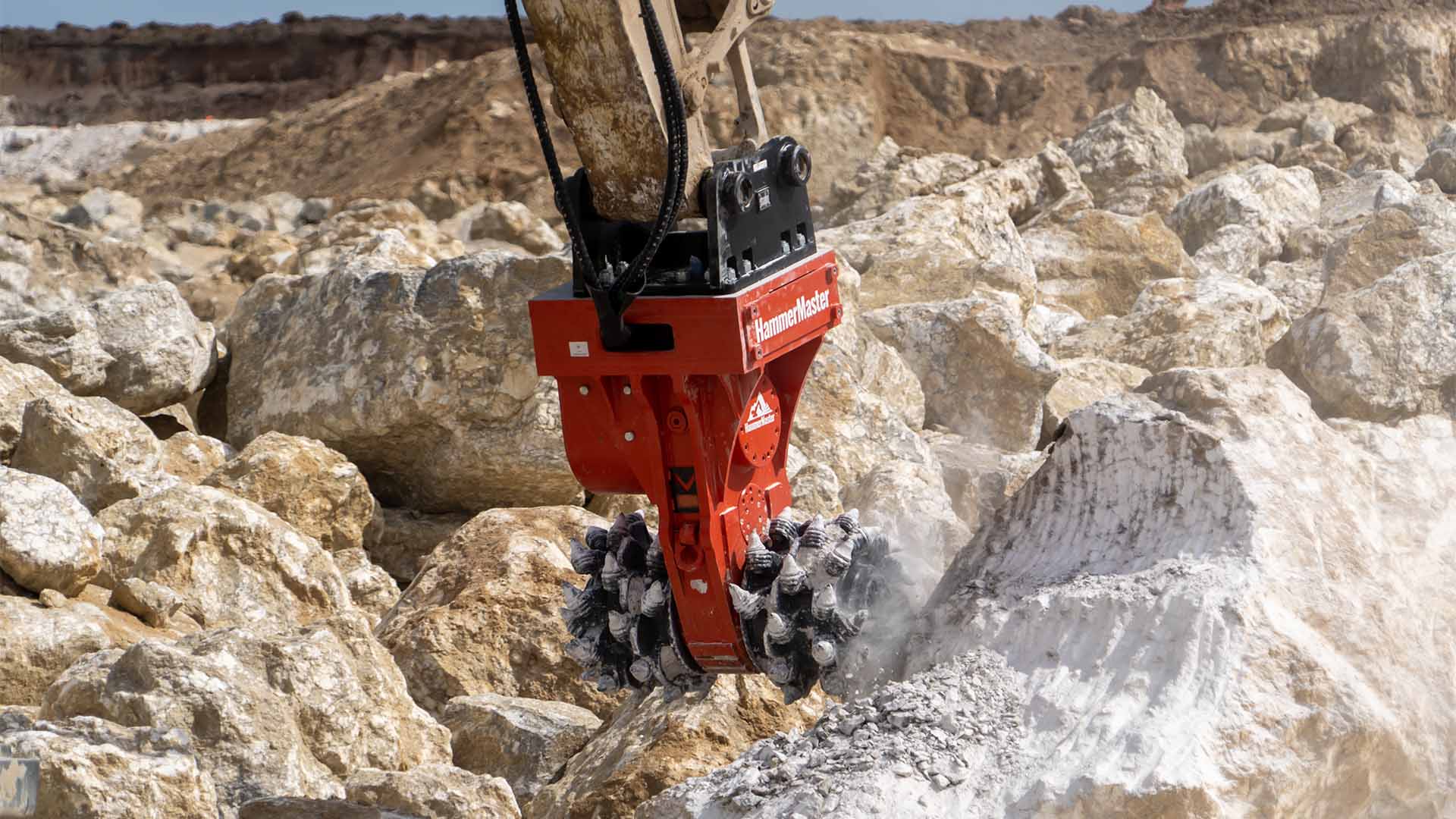 - Здесь массив известняковой породы разрушается специальным рыхлителем или гидромолотом, установленными на экскаватор. Роторная фреза — лучшее решение для добычи гипса.