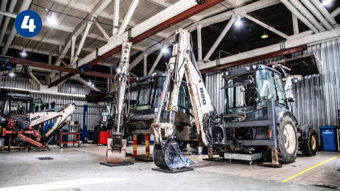 - 4. Участок по ремонту дорожно-строительной техники производит ремонт, настройку экскаваторов и других спецмашин как стационарно, так и на выезде, а также осуществляет работы по монтажу дополнительных гидролиний и дополнительного навесного оборудования.
