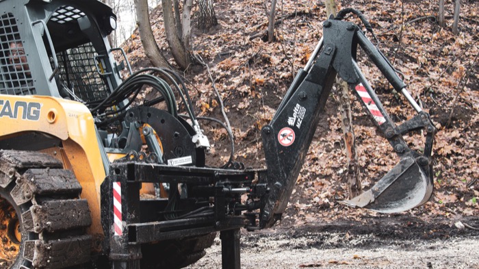 Экскаваторы на базе современных универсальных фронтальных мини-погрузчиков со сменным навесным оборудованием сегодня используются очень широко. Навесные ковши, являющиеся для такой машины сменным дополнительным оборудованием, легко заменить на другие виды навесного оборудования: гидромолоты, захваты. Возможность использования сменных навесных элементов и широкий ассортимент навесного оборудования позволяют использовать подобную технику для любых необходимых строительных работ.