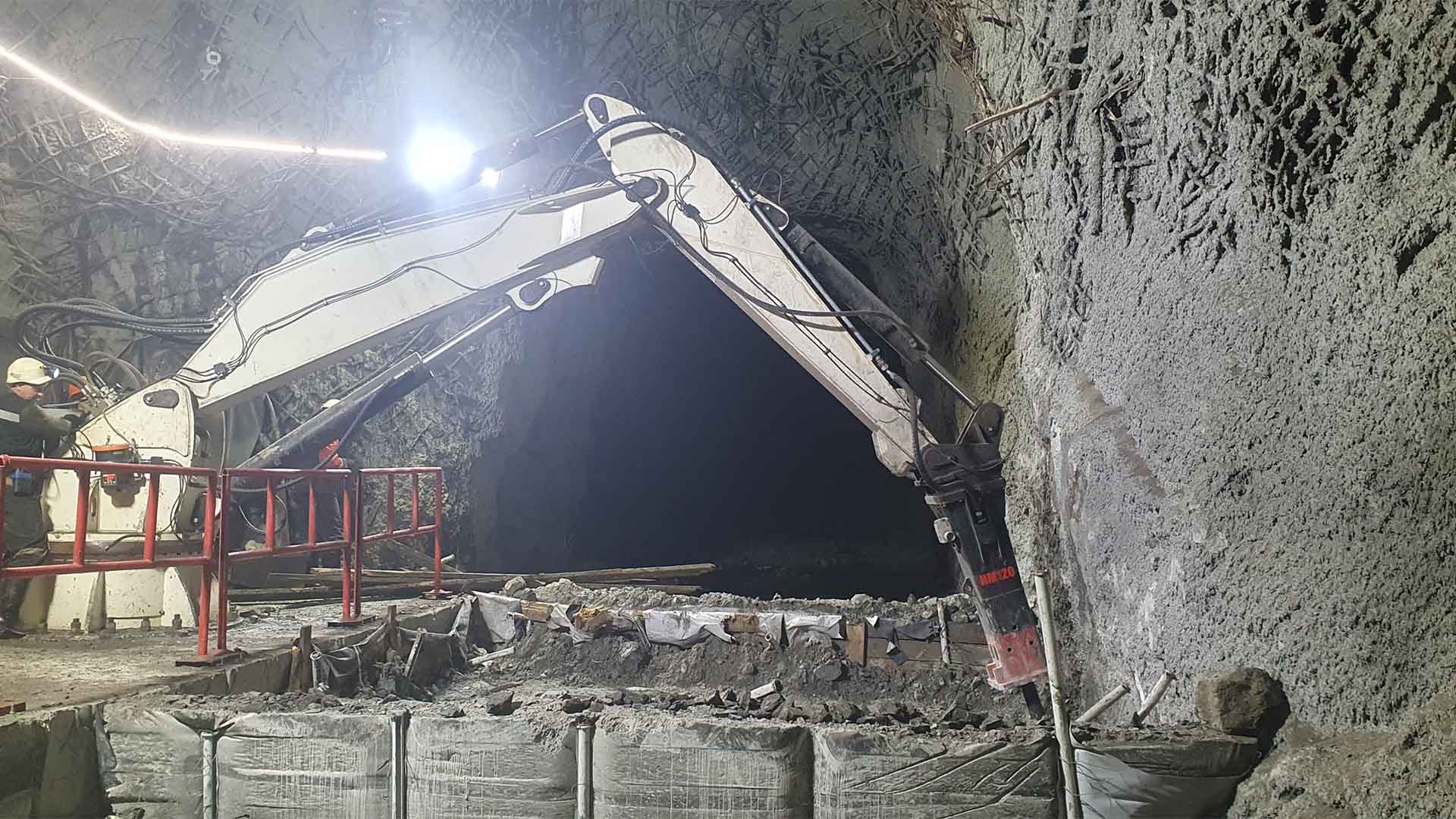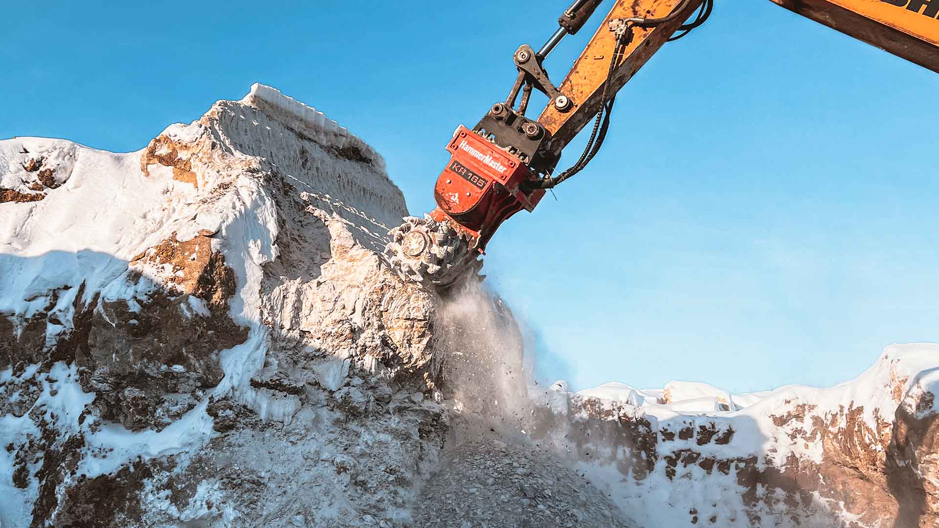 Гидромолот позволяет выборочно извлекать разные породы, исключает их смешивание, улучшая качество продукции. Применение гидромолотов при дроблении негабарита может происходить даже круглосуточно, так как мембранные гидромолоты работают на полной мощности с постоянной высокой энергией удара.