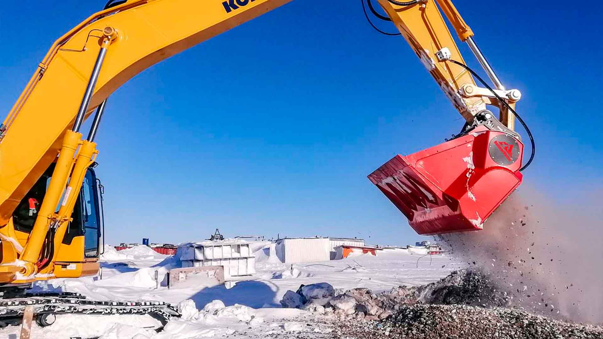 Для отделения полученного материала от пустой руды применяют просеивающие ковши. Они очищают взорванную породу от ненужных компонентов, поэтому в переработку идет более качественное сырье и нужно перерабатывать меньшее количество горной массы. Это увеличивает рентабельность карьера или горнодобывающего предприятия.