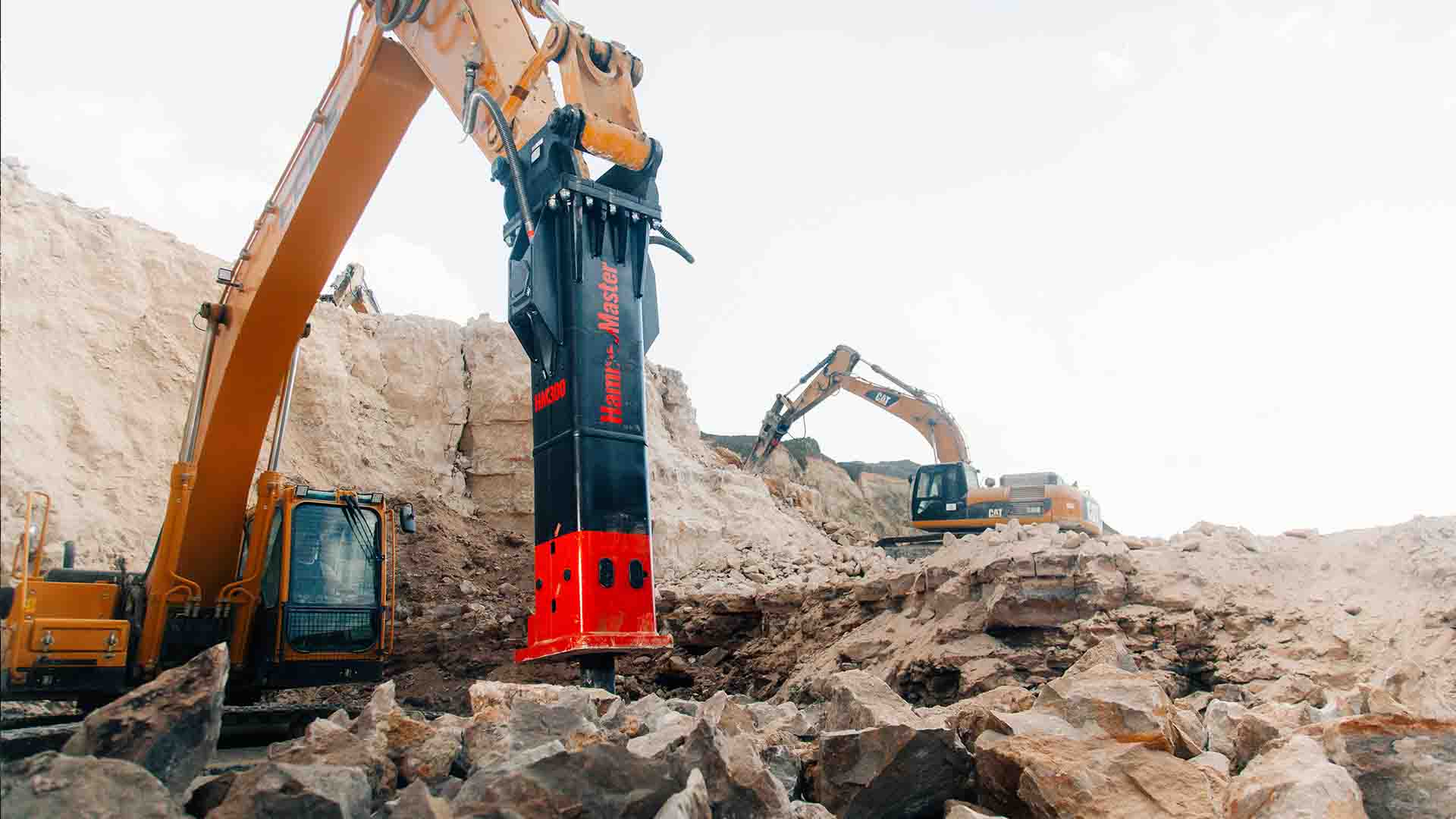 Среди основных видов оборудования можно выделить гидромолоты. Они применяются в самых разных ситуациях: для прямой добычи породы (обычно в случаях, когда буровзрывные работы запрещены), для дробления негабарита (в том числе в составе бутобойных установок).