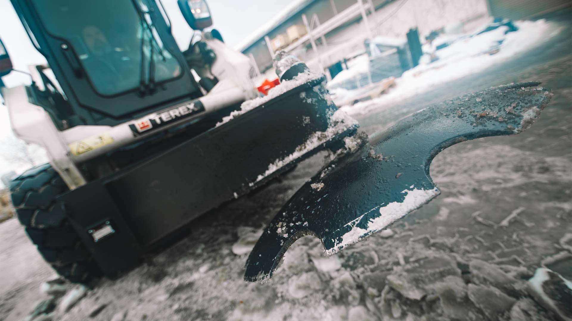 Скалыватель льда спроектирован таким образом, что воздействие на разламываемый лед происходит в одной точке, это позволяет при том же усилии разломать большую толщину за небольшой промежуток времени. Другими словами, мини-погрузчик может ехать со своей обычной скоростью и ломать лед по принципу ледокола в океане.