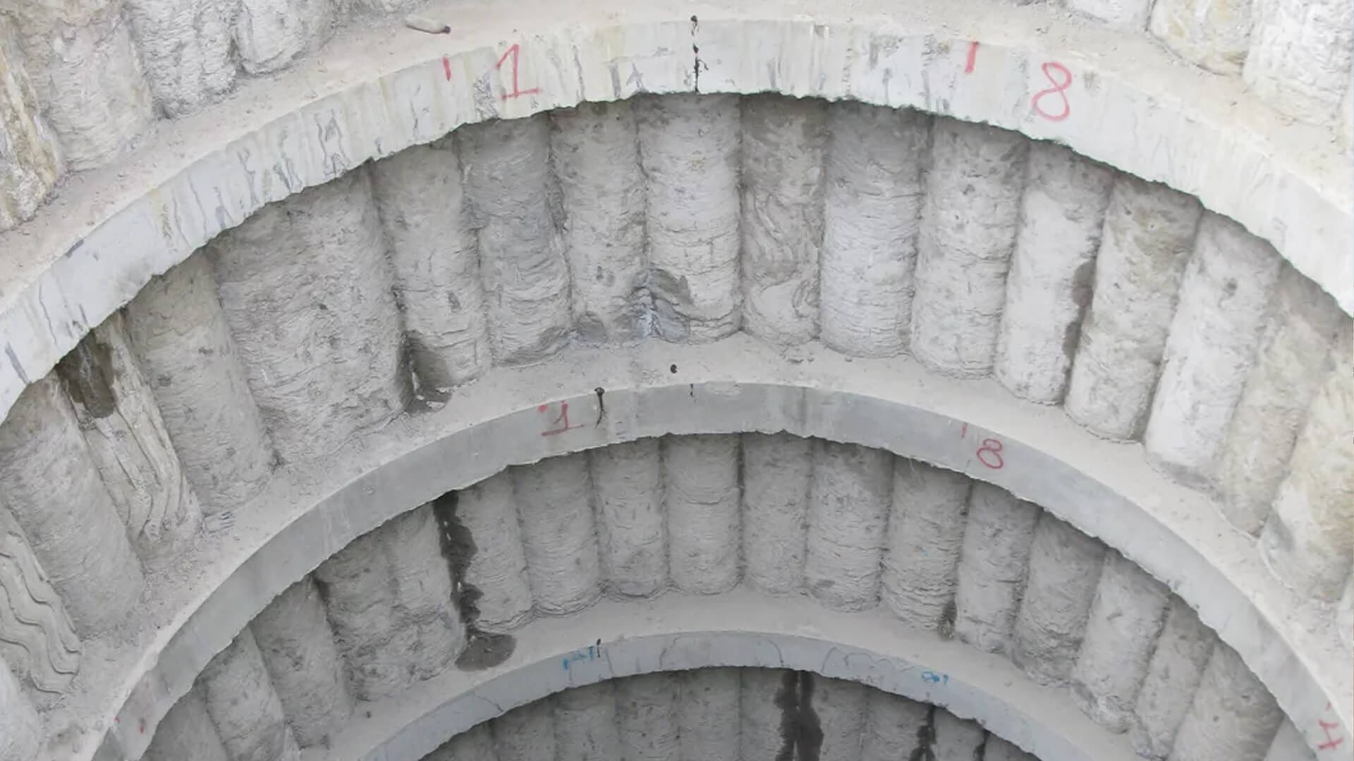 Особенность буросекущих опор в том, что они должны вставать стеной в грунте. Для этого сваи закладывают так, что расстояние между их центрами меньше диаметра, одна свая рассекает другую.