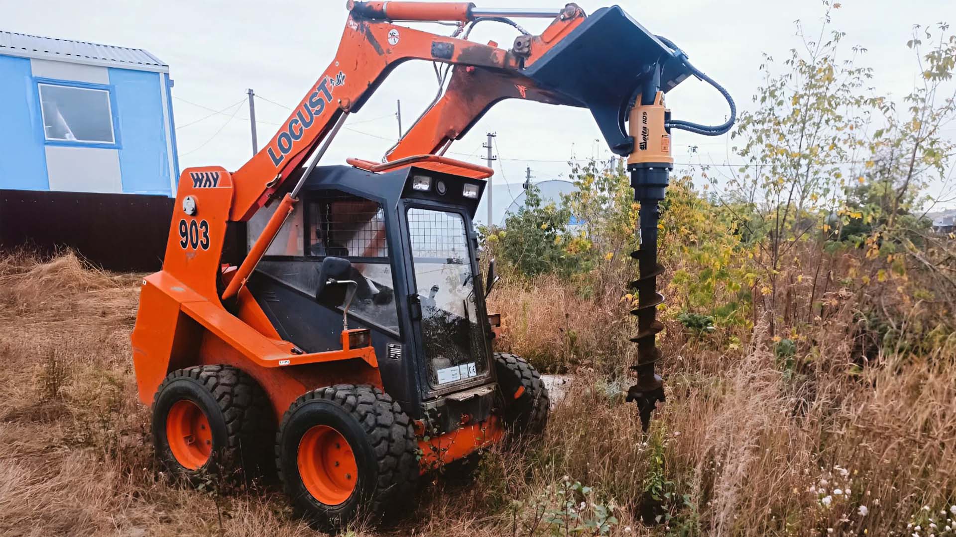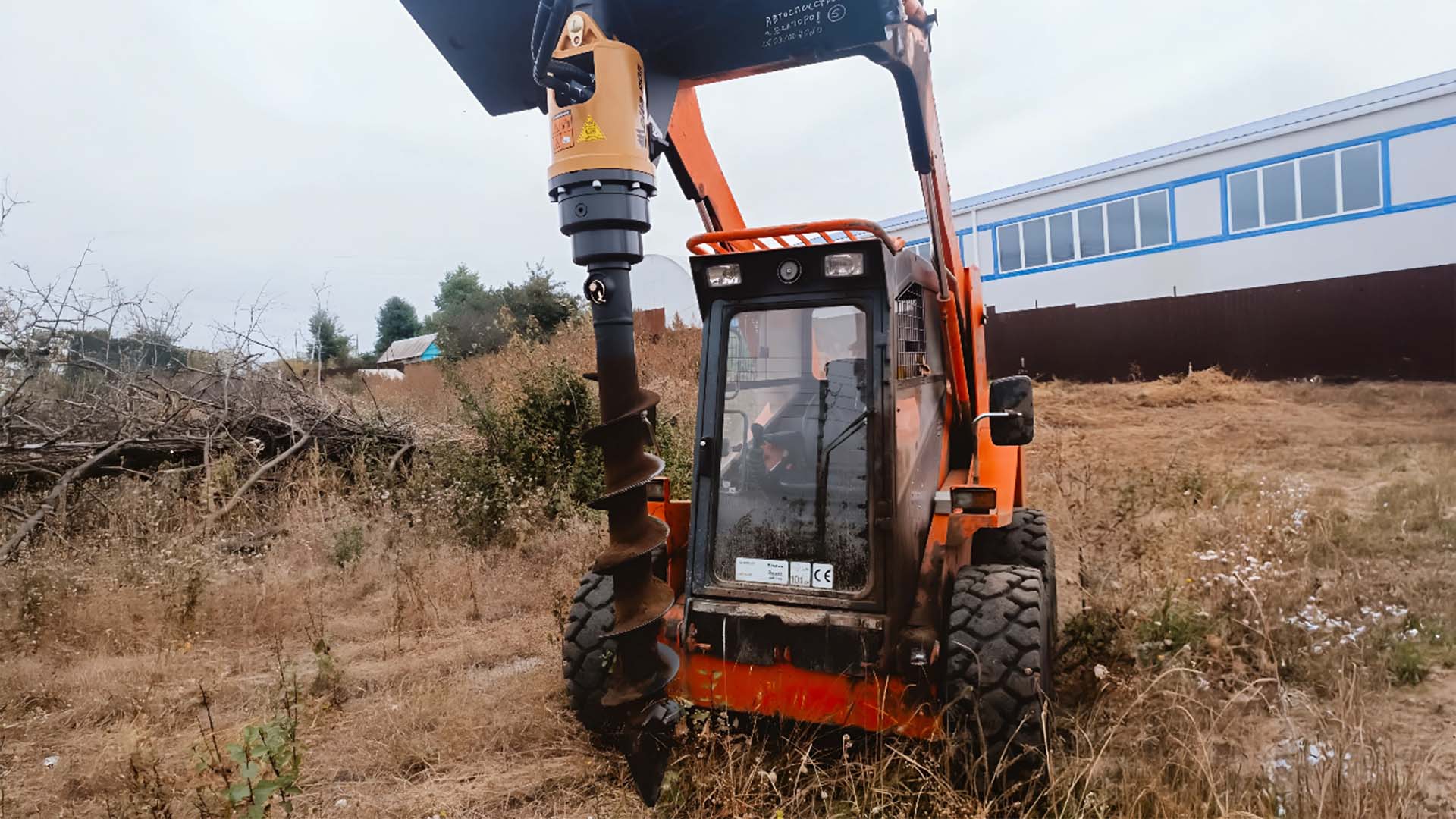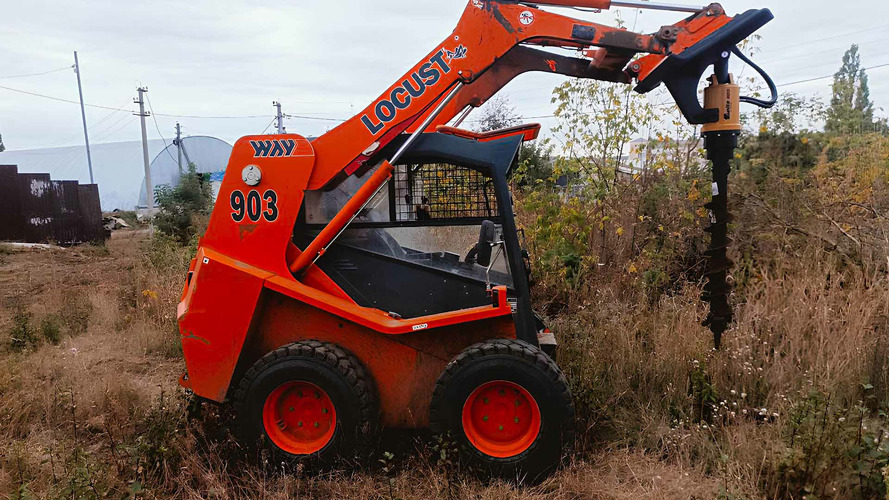 Работа не сложная — бурение в грунтах II-IV категорий скважин диаметром 200 мм. Но в связи с дефицитом времени одним из основных условий клиента была бесперебойность ежедневных работ. Поэтому мы сразу определили, что в этой ситуации необходимо применять профессиональный гидровращатель марки Delta. В этот раз мы агрегатировали мини-погрузчик Locust 903 с гидробуром.