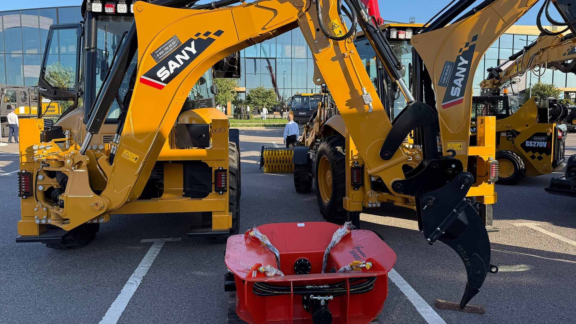 На стенде была представлена экспозиция техники Sany и навесного оборудования ГК «Традиция»: