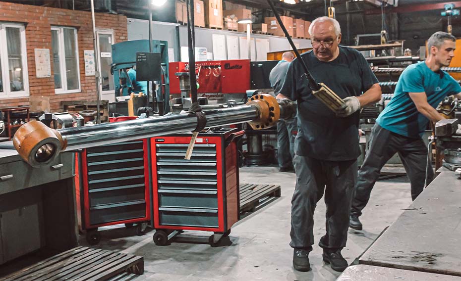 Сервисные инженеры провели разборку и дефектовку гидроцилиндра и гидрозамка, а затем осуществили замену уплотнений. После сборки гидроцилиндр был проверен на специализированном стенде.