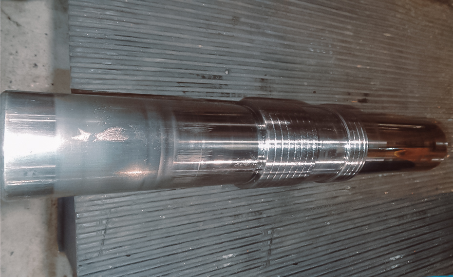 При разборке гидромолота были обнаружены следующие дефекты: износ ударной части бойка (поршня), глубокие задиры на рабочей поверхности бойка, задиры на рабочей поверхности гильзы, износ уплотнений. Также был обнаружен износ крепежей щек и подвески, износ пальца рабочего инструмента, износ нижней втулки и упорной шайбы, установочный винт отсутствовал.