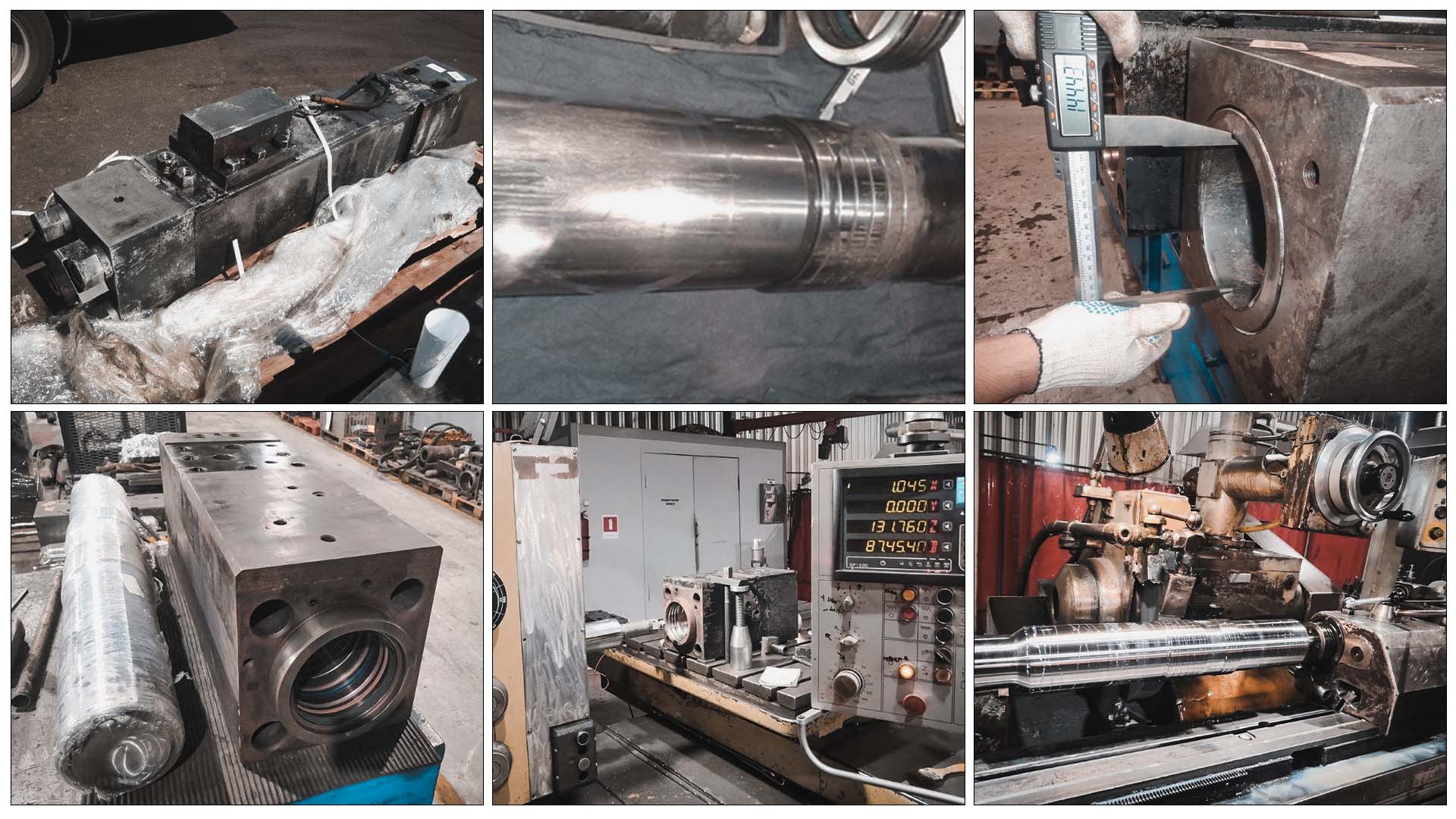 Затем цилиндр попадает на шлифовальный станок для шлифовки диаметров. Это достаточно сложный процесс, поскольку до начала шлифовки его необходимо устанавливать идеально ровно для исключения несоосности и биения. Цилиндр шлифуется достаточно долго в зависимости от глубины задиров и повреждений до полной чистоты поверхности или в определенный ремонтный размер.