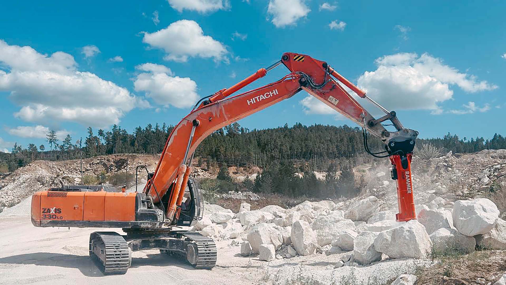 Наши сотрудники доставили молот и осуществили его монтаж на базовую машину, настройку машины, провели обучение оператора правилам работы и ввели молот в эксплуатацию. И уже совсем скоро навесное оборудование будет участвовать в добыче доломита с предварительным удалением гранита с вершины сопки.