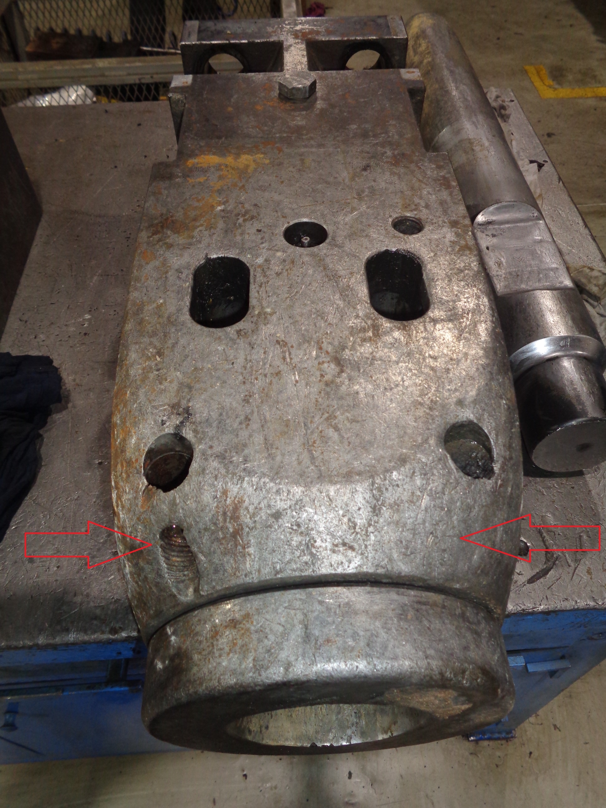 В результате дефектовки инженеры выявили глубокие задиры на рабочей части бойка и распределителя, износ централи, нижней части буксы и нижней втулки инструмента. Также были обнаружены трещины по сварочным швам щек.